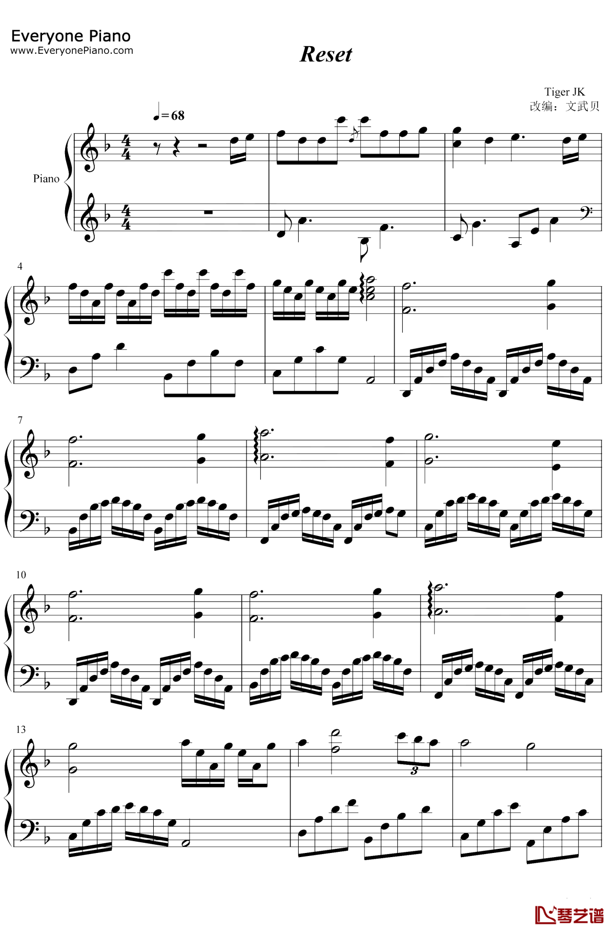 本页是Reset钢琴谱,TigerJK的一首歌曲,4/4拍的节奏,速度68拍每分钟,由曲谱热更新上传,共3张高清图片钢琴谱例,来源于网络转载,编配制谱者暂不详。