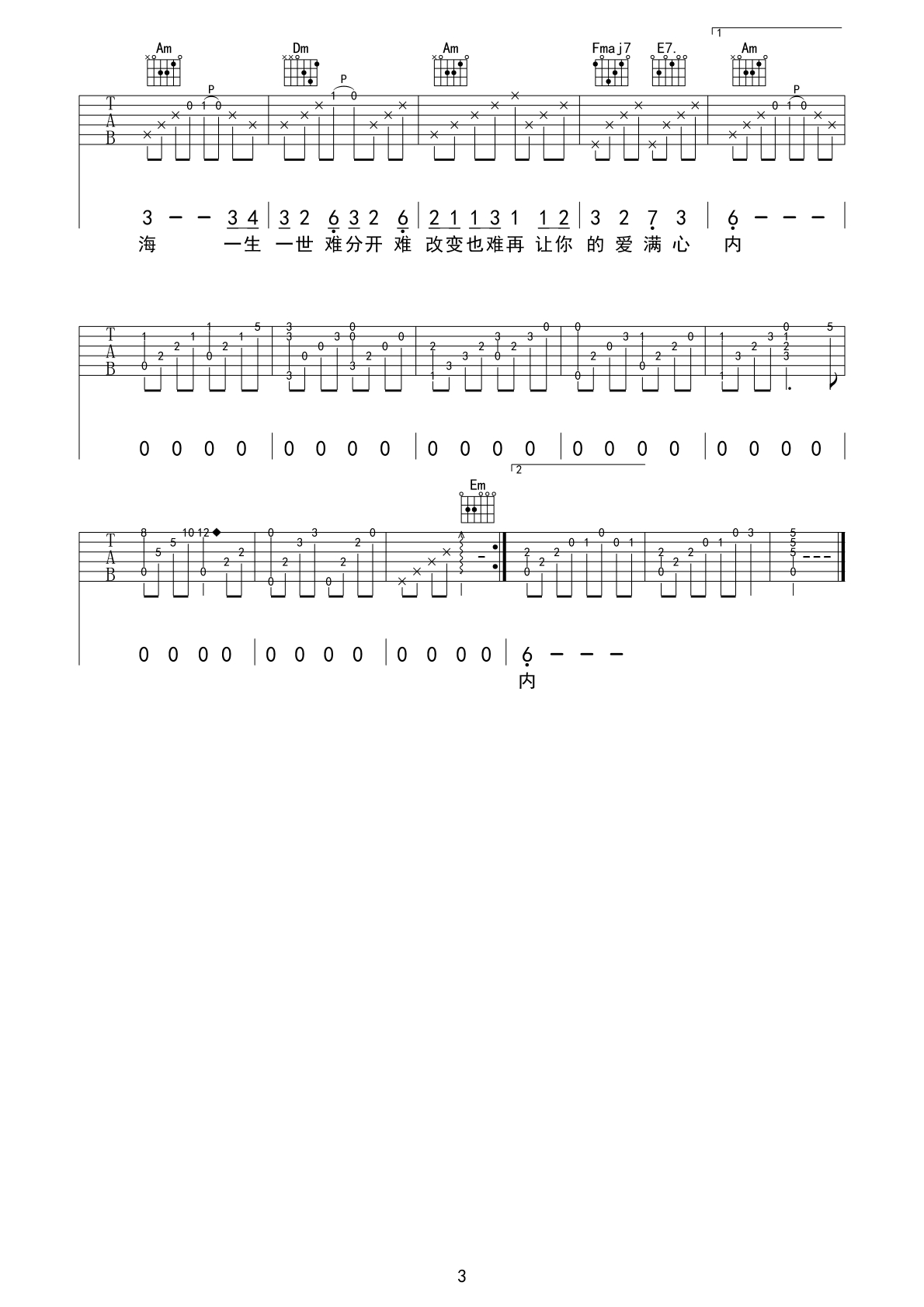 本页是最爱吉他谱,由周慧敏演唱,共有3页高清图,选用C调,节奏4/4拍,变调夹夹3品弹回原调。