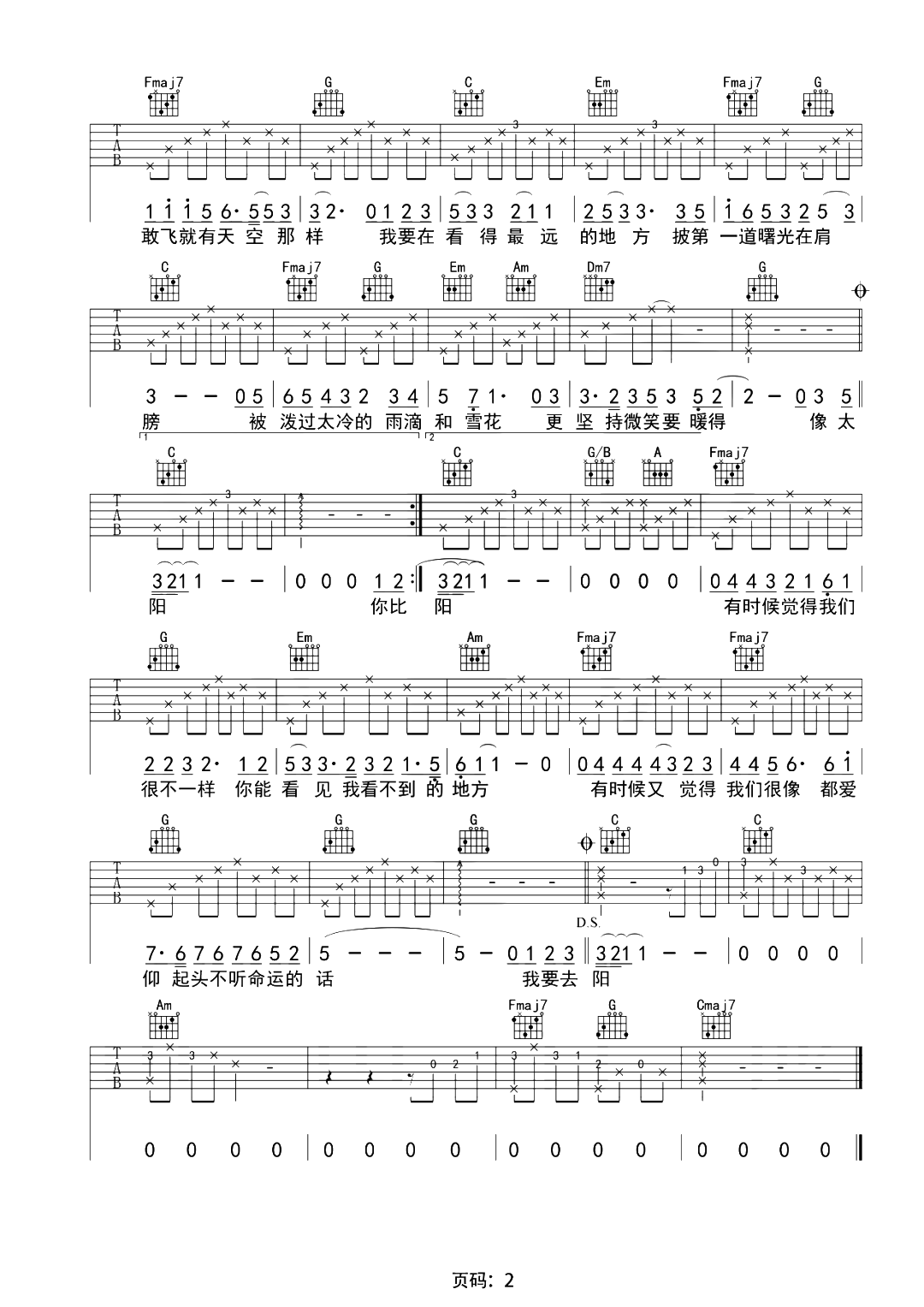 本页是看得最远的地方吉他谱,由毛不易演唱,共有2页高清图,选用C调,节奏4/4拍,变调夹夹3品弹唱原调。
