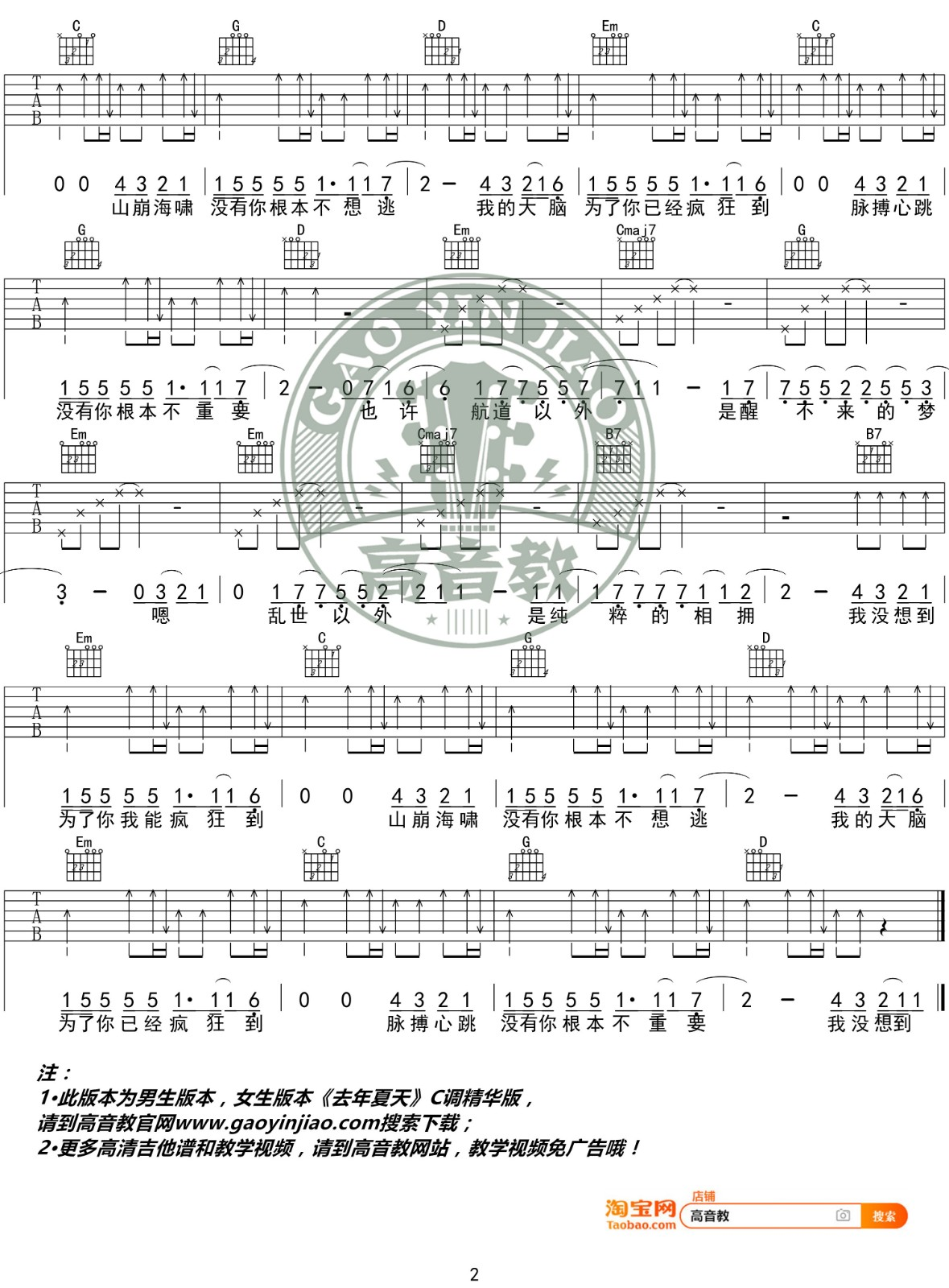 本页是光年之外吉他谱,由邓紫棋演唱,共有2页高清图,选用G调,节奏4/4拍,速度88BPM,无需使用变调夹。