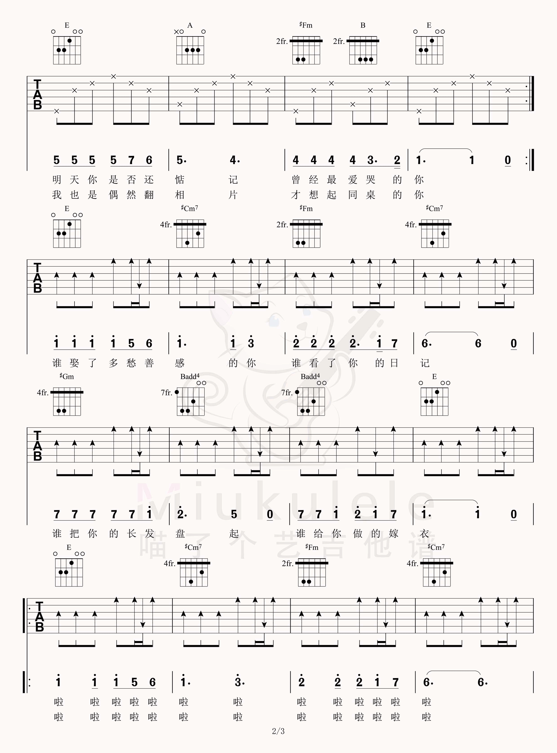 本页是同桌的你吉他谱,由老狼演唱,共有3页高清图谱,选用E调,节奏4/4拍,无需使用变调夹。
