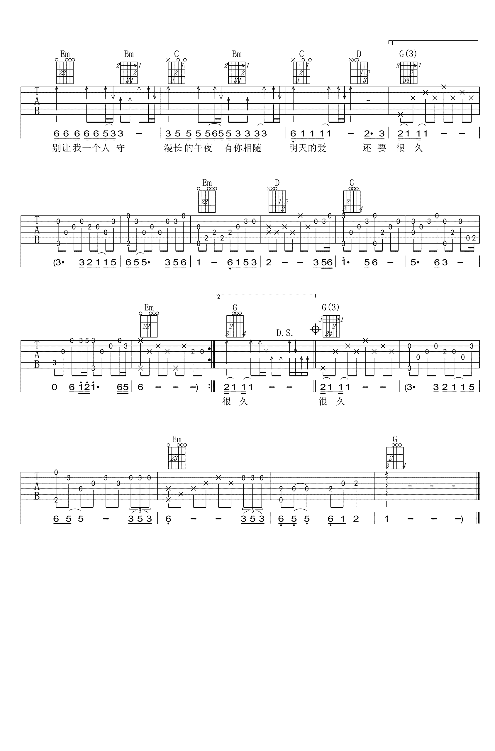 本页是别让我一个人醉吉他谱,由姜育恒演唱,选用G调指法,变调夹夹2品弹唱原调,节奏4/4拍,共有2页高清图谱。