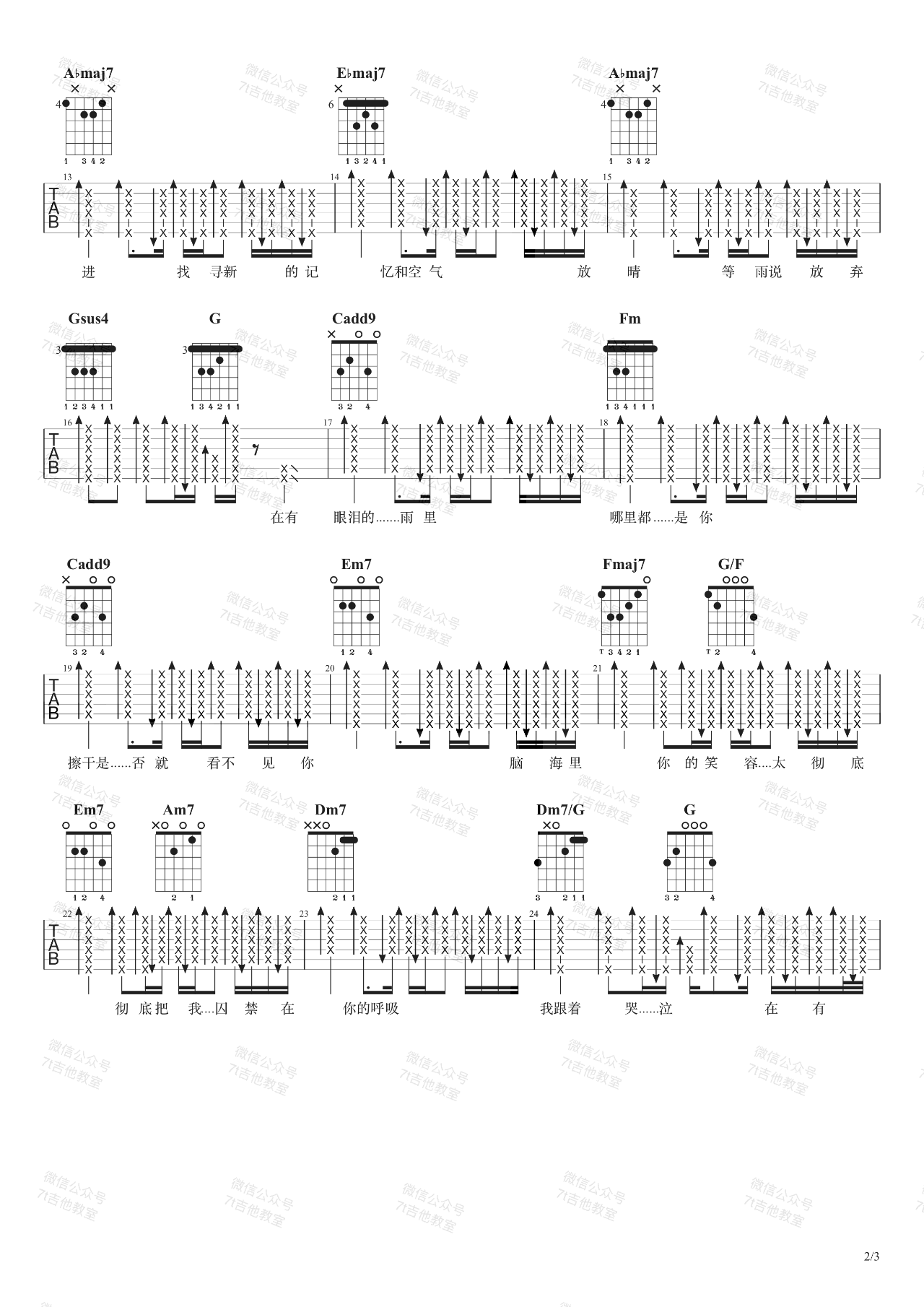 本页是哪里都是你吉他谱,由周杰伦演唱,共有3页高清图谱,选用C调,节奏4/4拍,速度65BPM,变调夹夹5品弹唱原调。