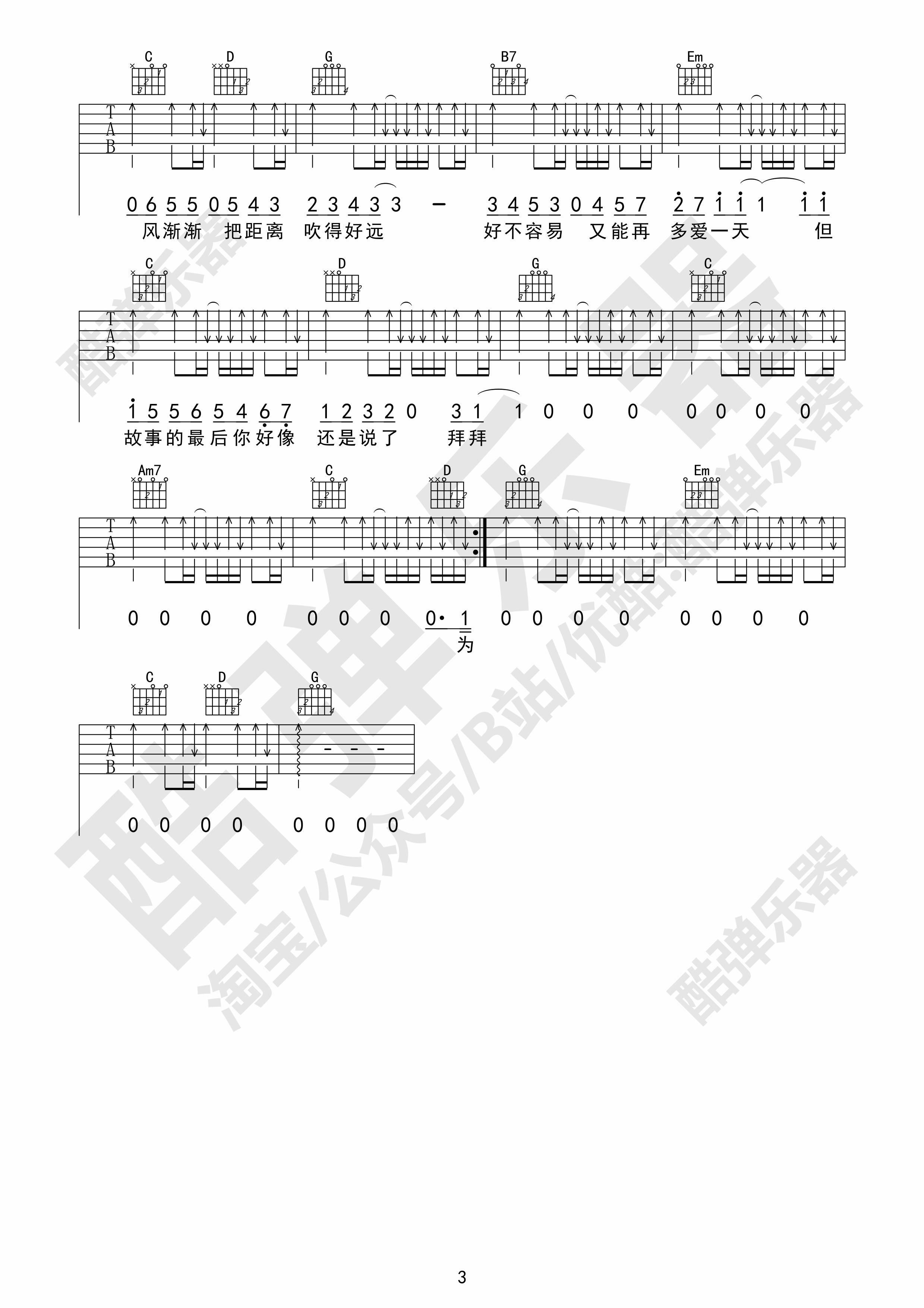 本页是晴天吉他谱,由周杰伦演唱,共有3页高清图谱,选用G调,节奏4/4拍,无需使用变调夹.