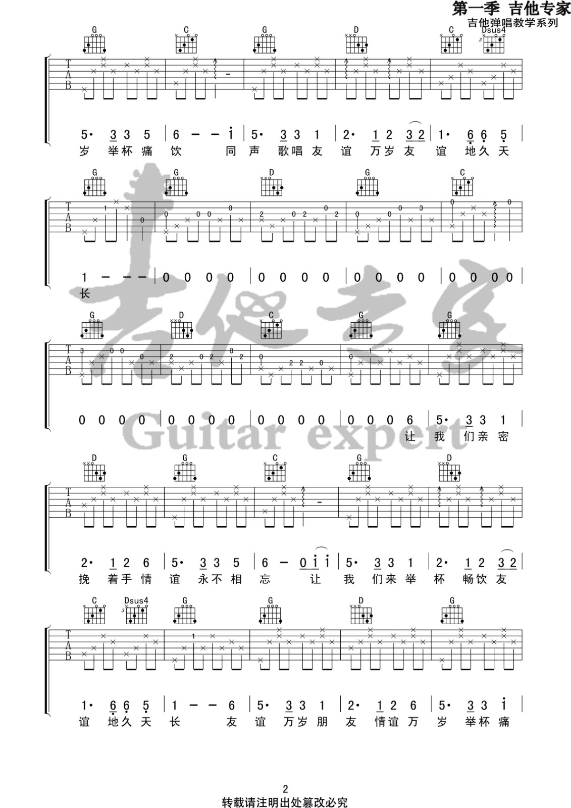 本页是友谊地久天长吉他谱,由王源演唱,选用G调指法,无需使用变调夹,节奏4/4拍,共有3页高清图谱。