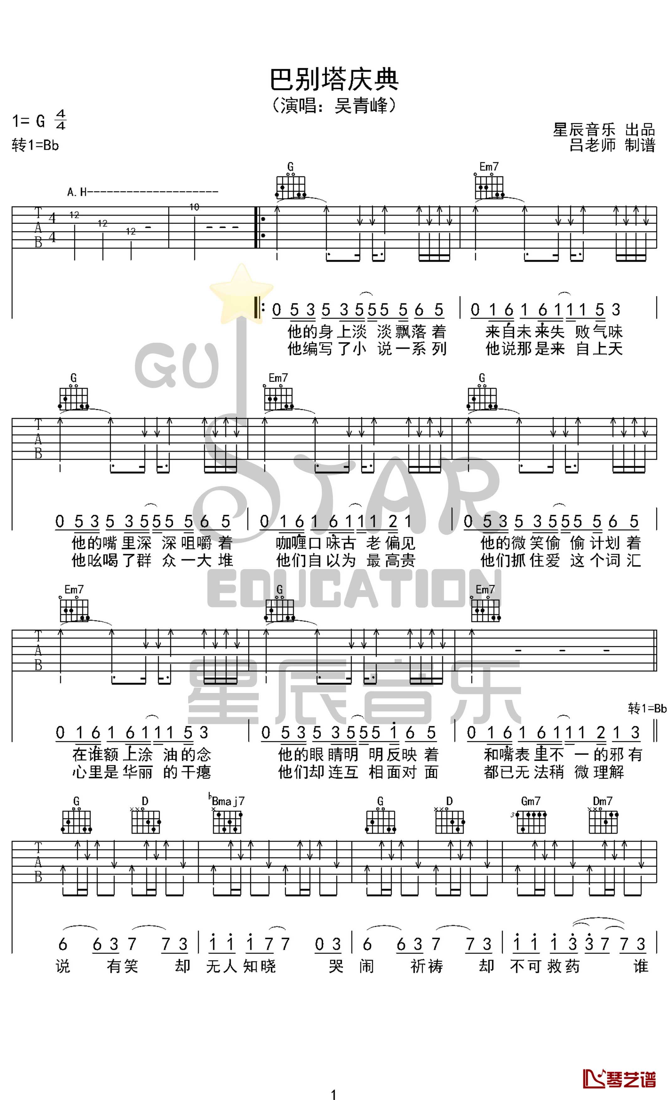 本页是深夜的歌吉他谱,由何教授演唱,共有4页高清图谱,选用G调,节奏4/4拍,变调夹夹3品弹唱原调。