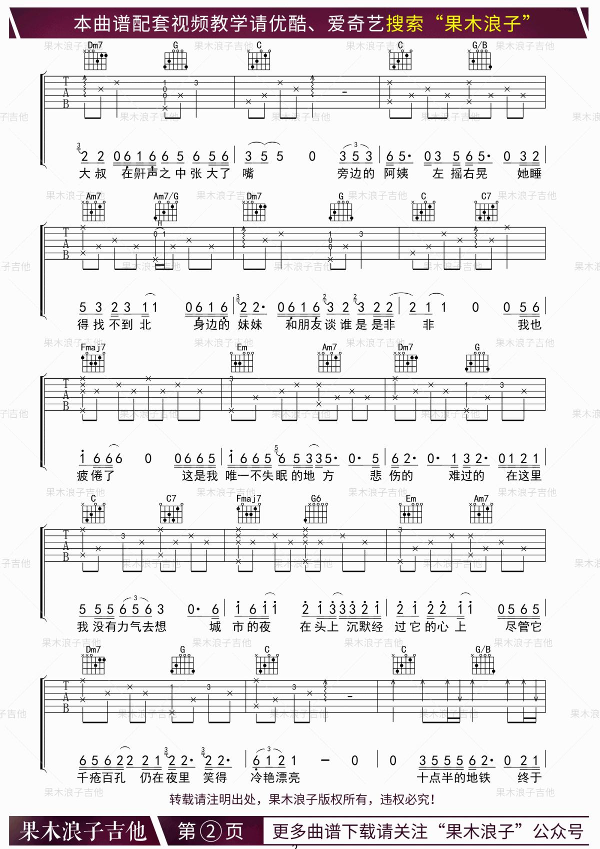 本页是十点半的地铁吉他谱,由李健演唱,共有4页高清图谱,选用C调,节奏4/4拍,变调夹夹3品弹唱原调。