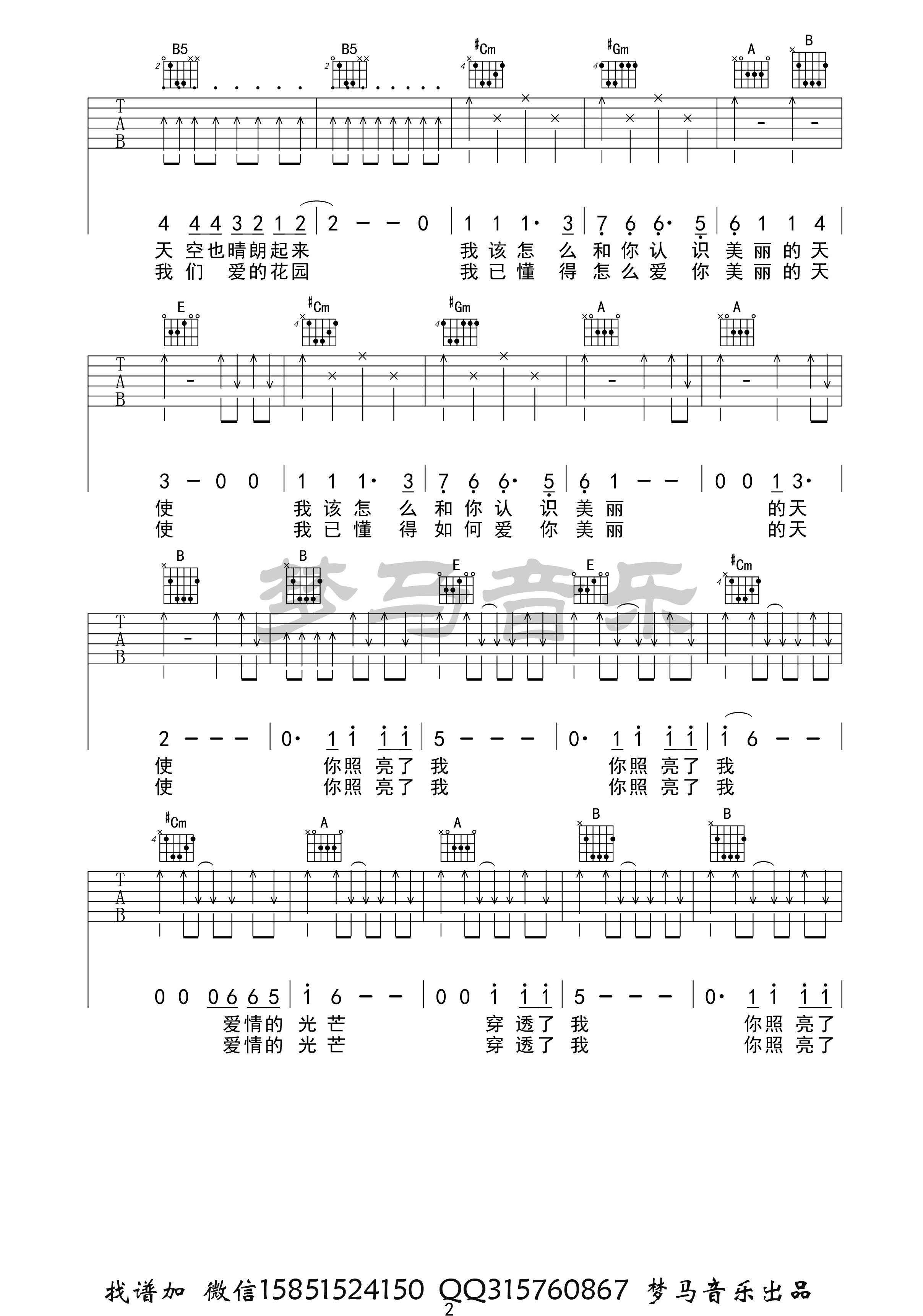 本页是万达广场之恋吉他谱,由张闯演唱,共有2页高清图谱,选用E调,节奏4/4拍,无需使用变调夹。