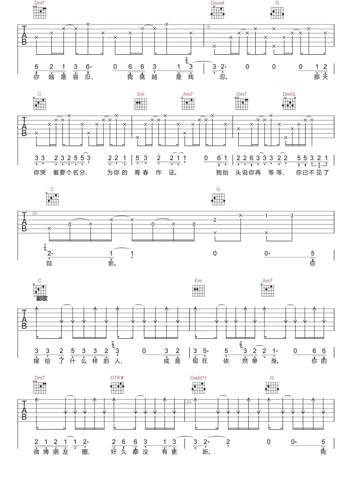 本页是渣吉他谱,由赵英俊演唱,共有4页曲谱,选用C调,节奏4/4拍,速度55BPM,变调夹夹5品弹唱原调。