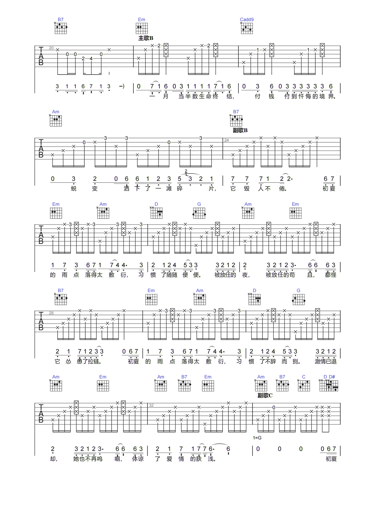 本页是毁人不倦吉他谱,由许嵩演唱,共有4页,选用G调,节奏4/4拍,速度57BPM,降半音弹唱原调。 我们爱过那么多人,走过许多自己都觉得不可思议的路途。最终想要的还是哪个最初的怀抱。不要忘却来的方向,向前看,时间会告诉我们答案。