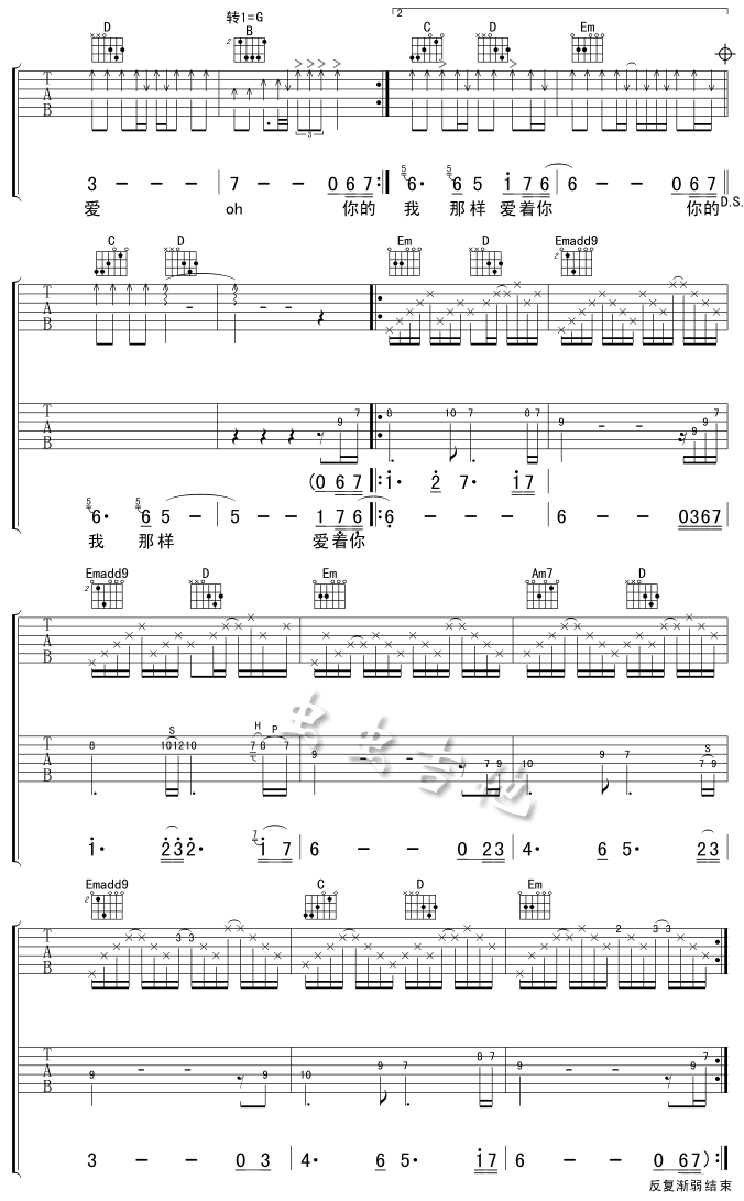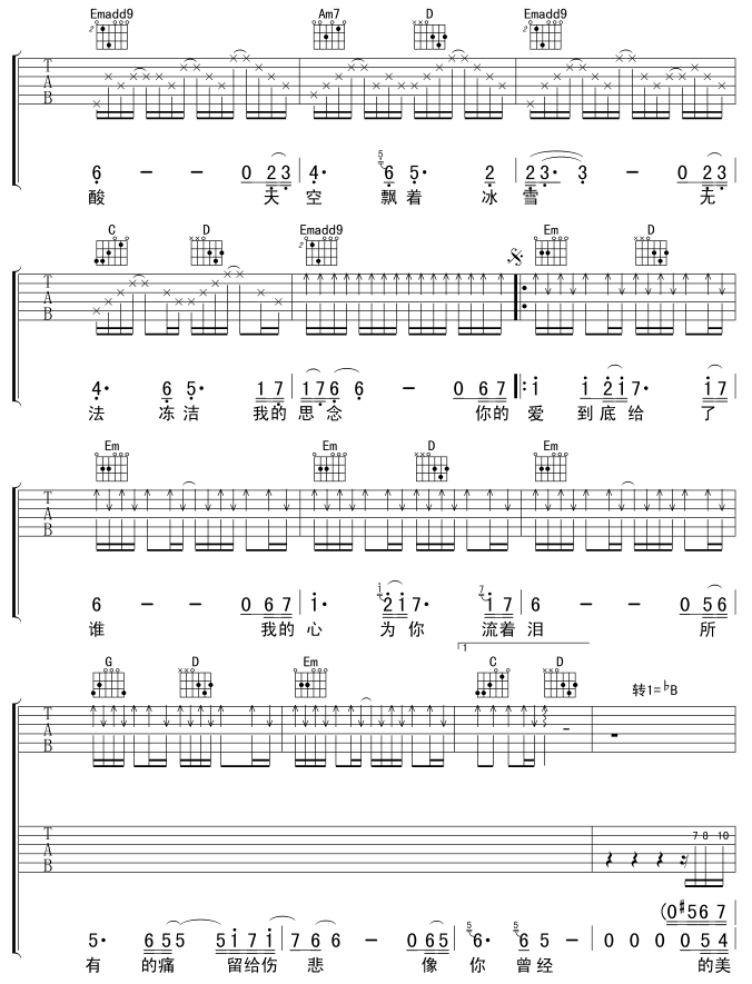 本页是你的爱给了谁吉他谱,由零点乐队演唱,共有5页高清图谱,选用G调,节奏4/4拍,速度80BPM,无需使用变调夹。