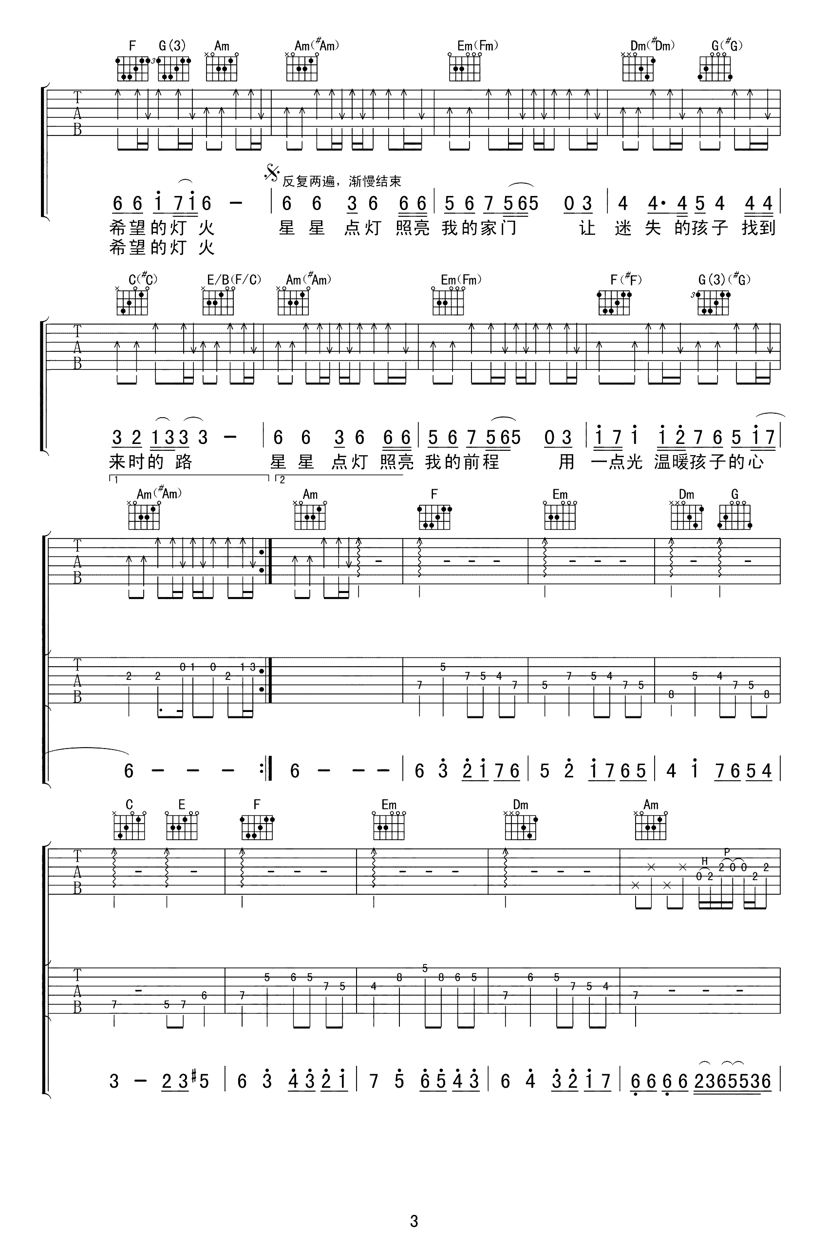 本页是星星点灯吉他谱,由郑智化演唱,共有4页高清图谱,选用C调,节奏4/4拍,变调夹夹4品弹唱原调。