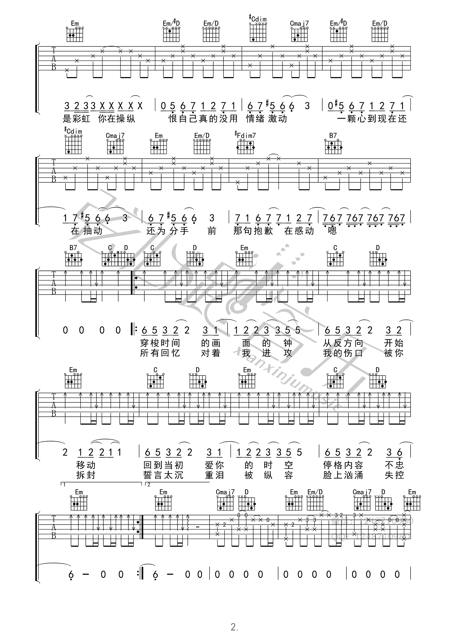 本页是反方向的钟吉他谱,由周杰伦演唱,共有3页高清图,选用C调,节奏4/4拍,无需使用变调夹。